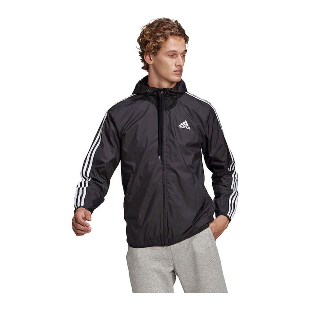 Ανδρικό μπουφάν της εταιρείας Adidas, κατασκευασμένο από ειδικό υλικό που αντέχει στον αέρα. Διαθέτει κουκούλα για περισσότερη προστασία, είναι ελαφρύ