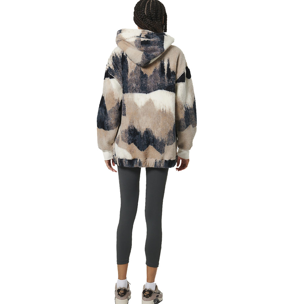 BDA WMNS PRINTED ZIP-UP SHERPA FLEECE HOODIE 071529-WINTER MOUNTAIN ECRU